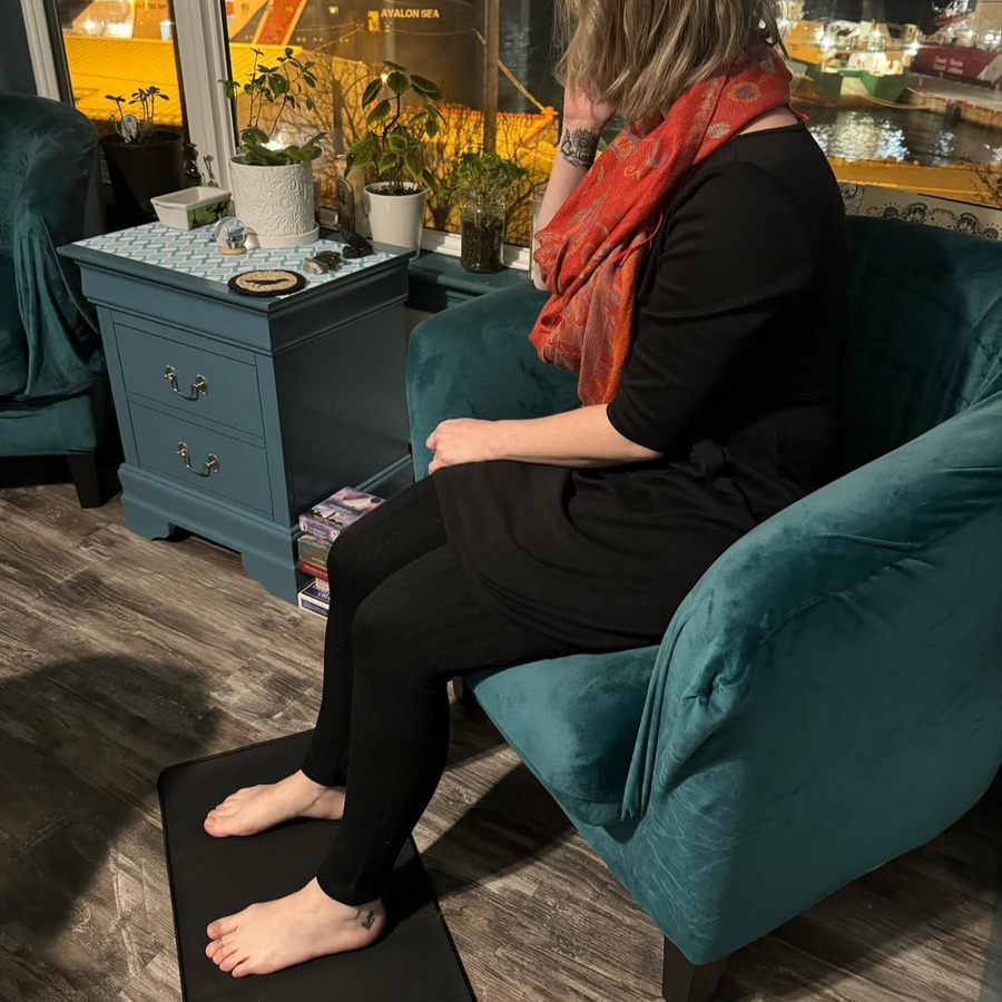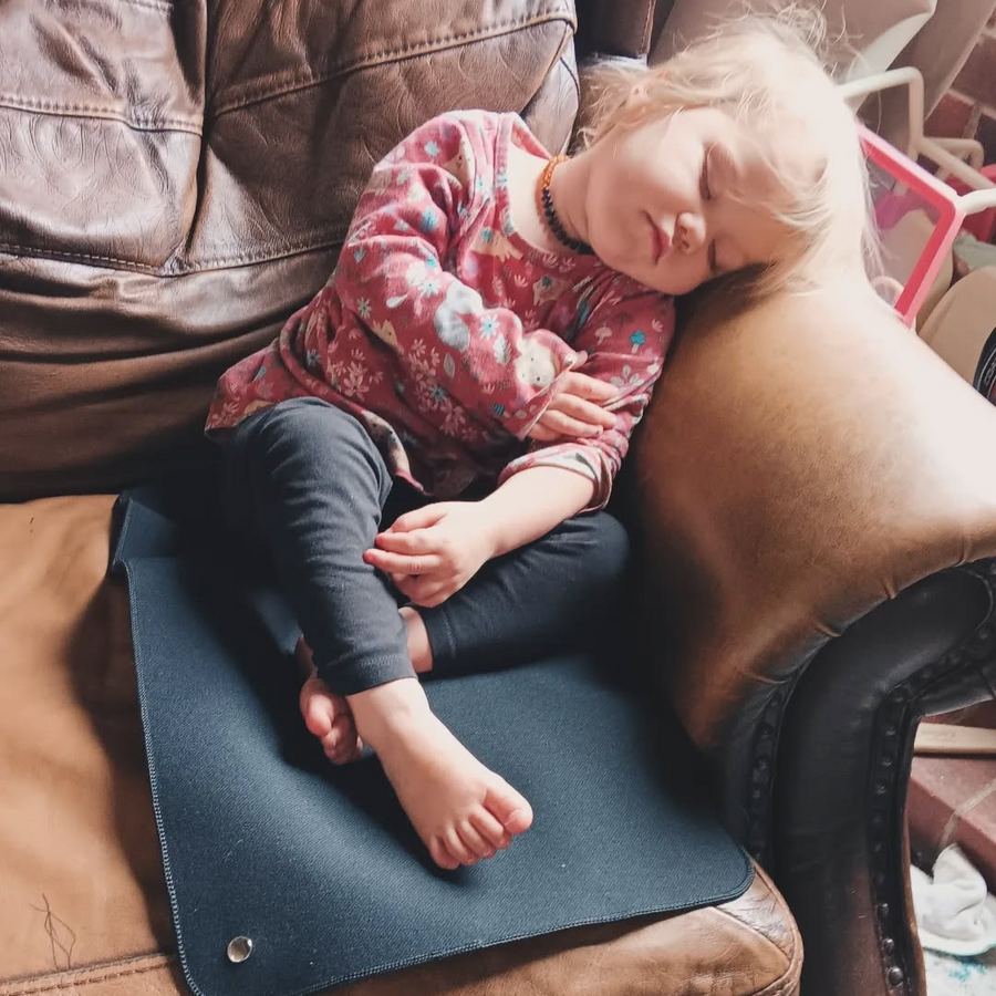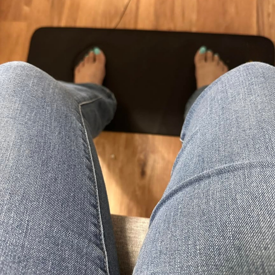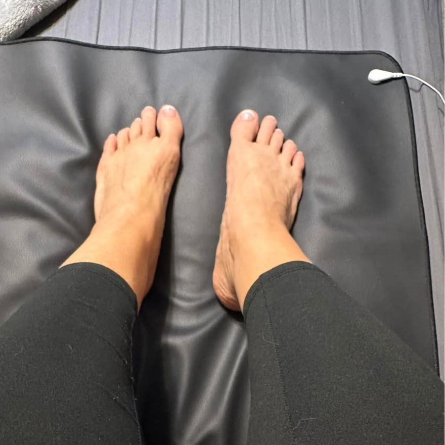Du kan bruke matten hvor som helst – under skrivebordet, på sofaen eller i sengen. Det viktigste er at du har direkte hudkontakt med matten.